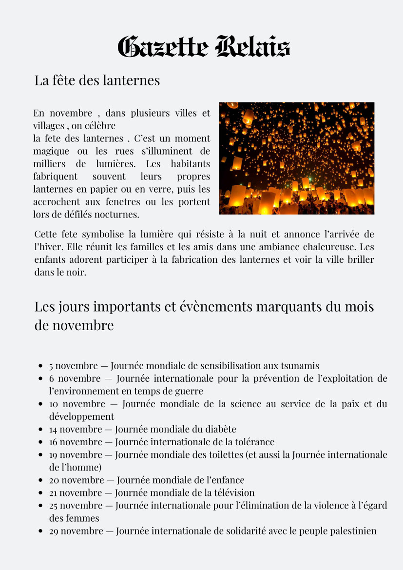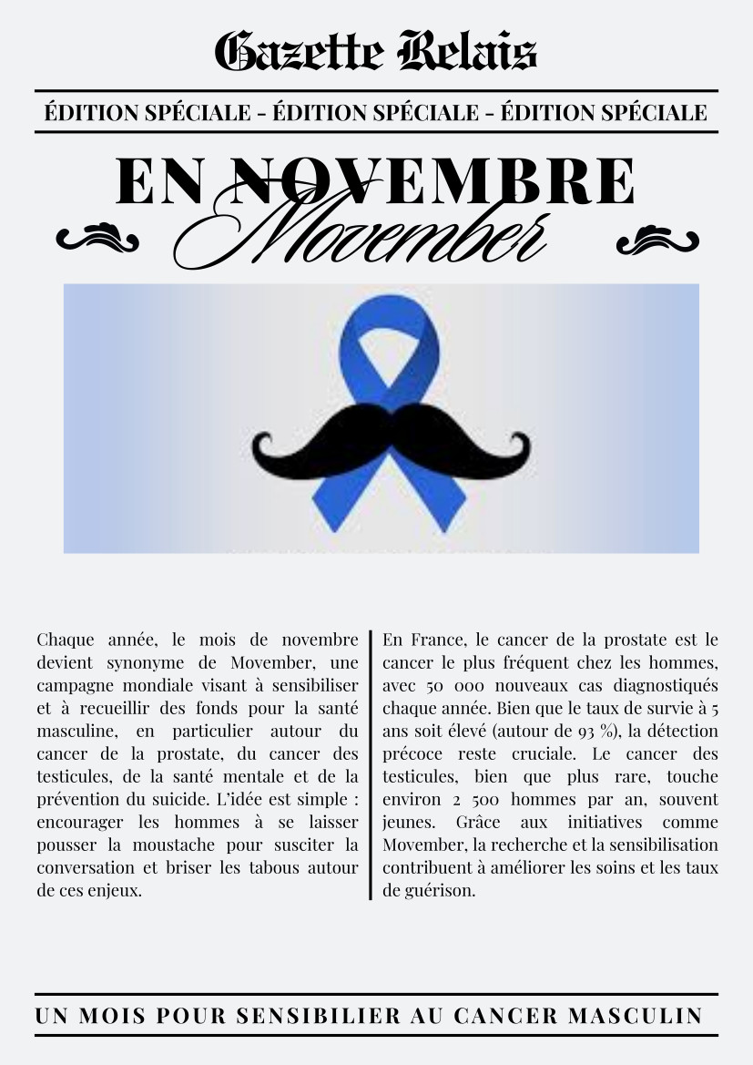 Dans le cadre d’une première approche du journalisme, les élèves de 3ème Relai ont conçu et réalisé une gazette du lycée pour les mois de novembre et décembre. Découvrez ci-dessous ces deux premiers numéros mettant à l’honneur le Movember et les fêtes de Noël.
